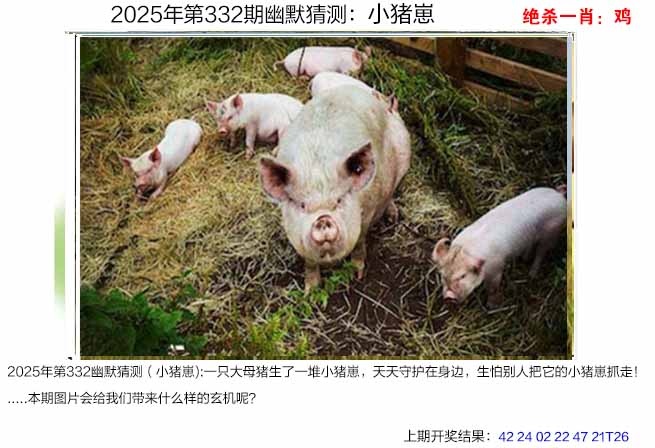①第332期图片猜测(小猪崽) 一只大母猪生了一堆小猪崽,天天守护在身边,生怕别人把它的小猪崽抓走!..本期图片会给我们带来什么样的玄机呢? 解:小猪崽解猪肖 ②第332期视频猜测(战斗) 勇敢的免子少年不怕危险,深入龙穴,一定要救出被恶龙困住的小伙伴,免子少年好不容易救下来自己的伙伴,随之而来的是与恶龙的一场战斗较量,究竟谁会胜出?.. ....本期视频会给我们带来什么样的玄机呢? 解:明肖兔龙,战斗解战肖虎狗牛马 ================================= 幽默猜测综合取肖:猪兔龙虎狗牛马 本期猜测看好特码:19.31.03.27.02.38.40.20.17.12 |